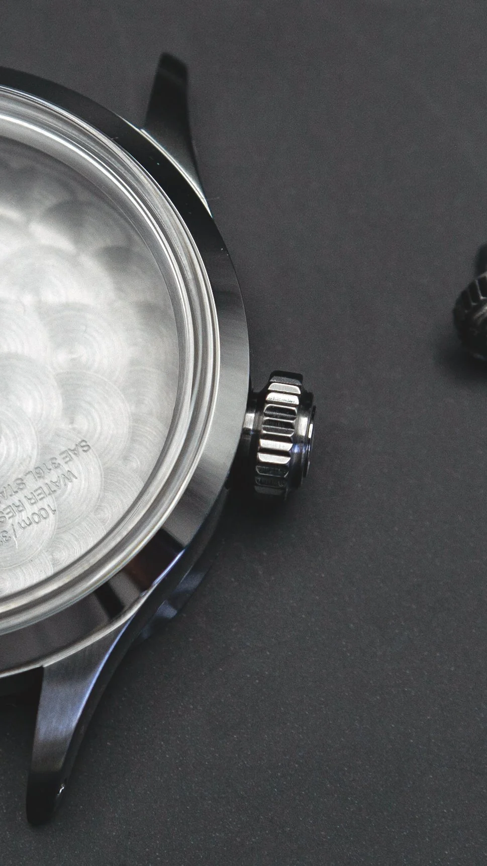36mm Stainless steel case with screw-down case back and EXTRA large screw-down crown