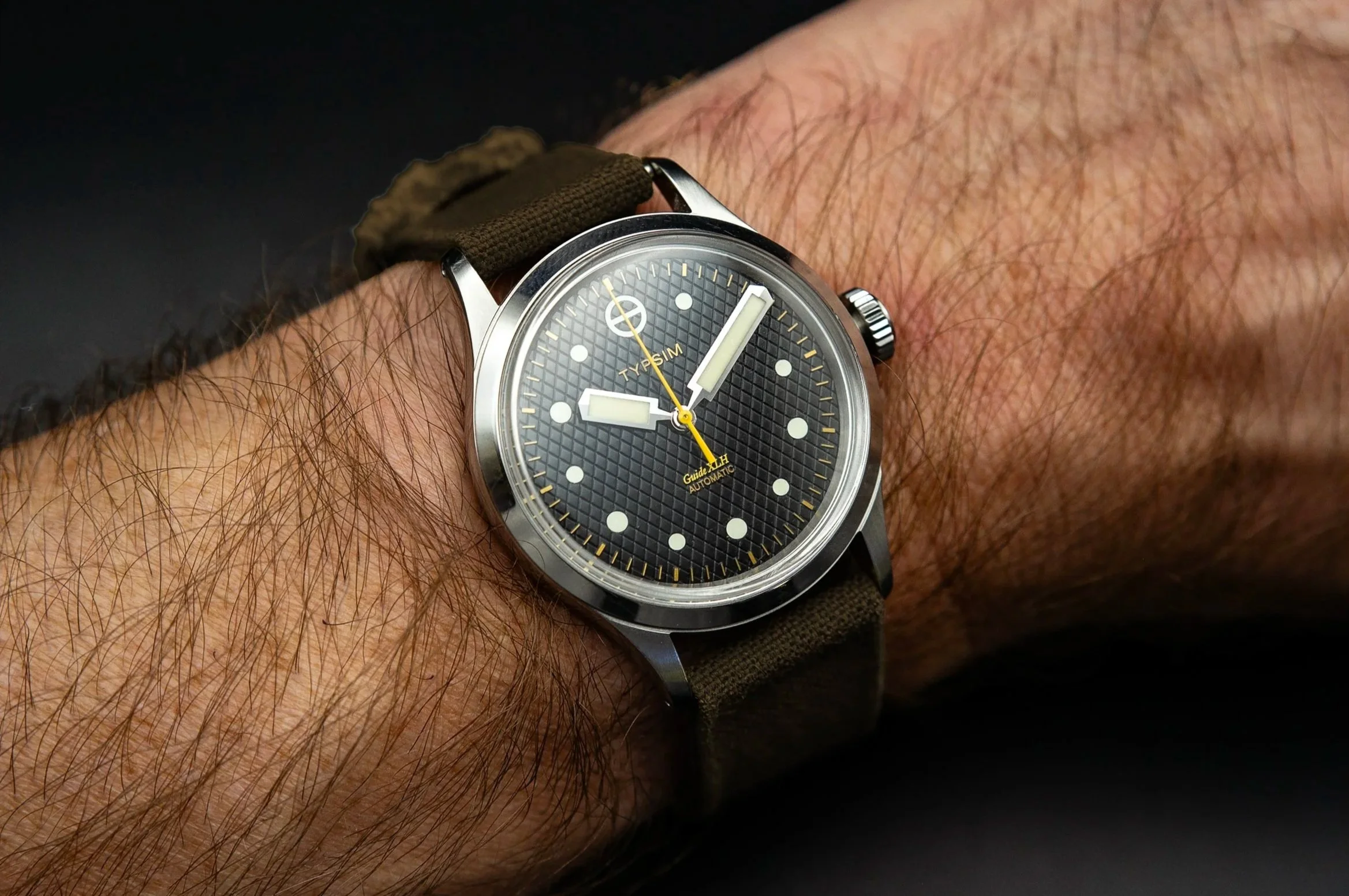 It’s the guide with a simplified dial but super-sized with a big crown and big, big hands. Your quintessential field watch just got much easier to read, day or night. And to pull it all together, it’s being offered on a bespoke strap handmade by substation here in seattle.